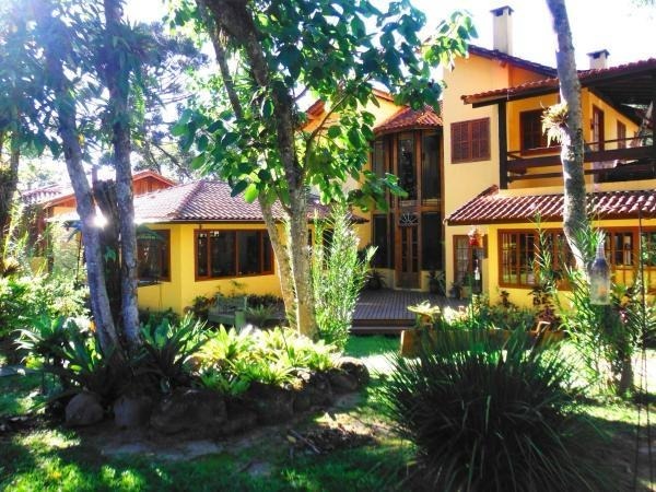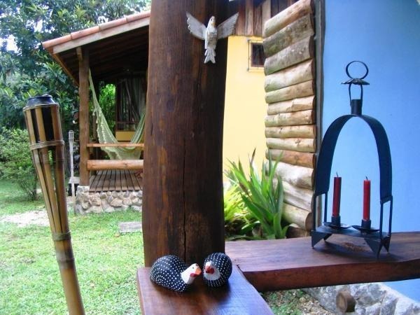 Chalé rústico, TV LCD 22?/DVD, Dvdteca com mais de 300 filmes, Lareira com kit completo e reposição, Frigobar (taças e louças de apoio), Cama Queen (rouparia algodão 300 fios), Toalhas Kingsize, Espreguiçadeiras e Roupões, Kit amenities e Secador de cabelo, Guarda chuva, Lanterna e Varanda com rede.
